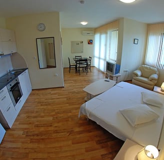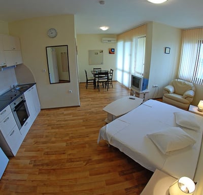 2 room apartments (1 bedroom, lounge, kitchen, bathroom) come fully equipped with everything you need. The size of these apartments range from 45 - 65 square meters, with standard, comfort and large options.